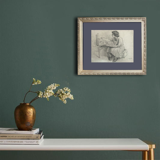 Porträt eines Mädchens, das zeichnet. 1953.