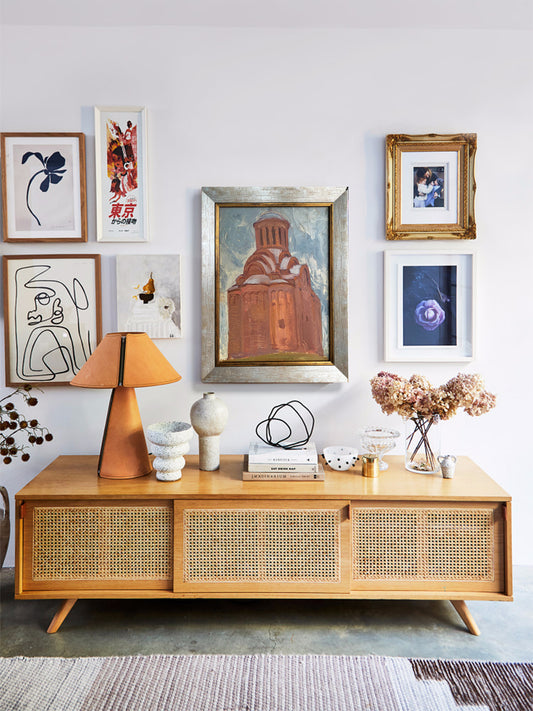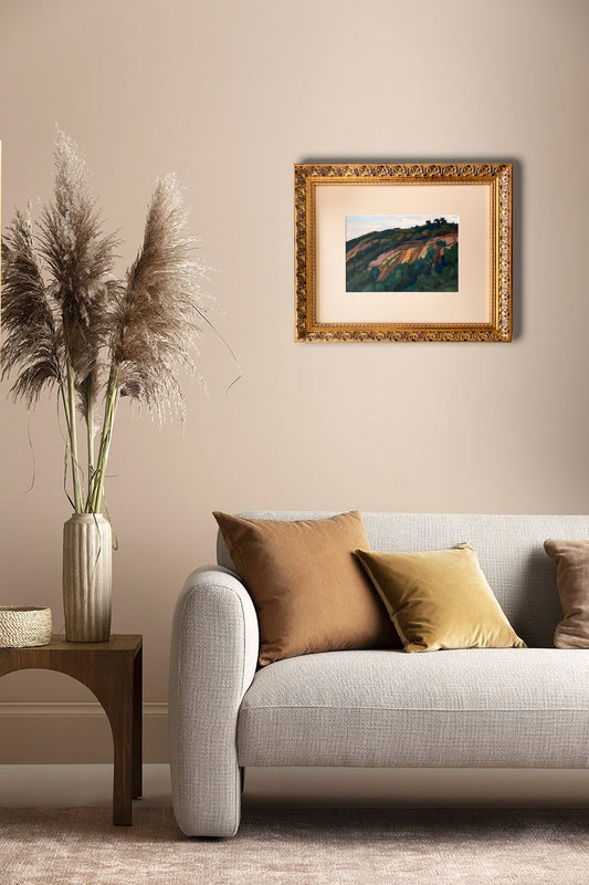 Grüne Hügel und rosa Wolken am Himmel. 1970s.