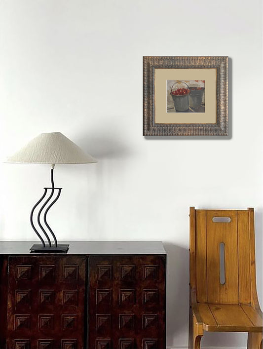 Eimer mit roten Beeren. 1970er Jahre.