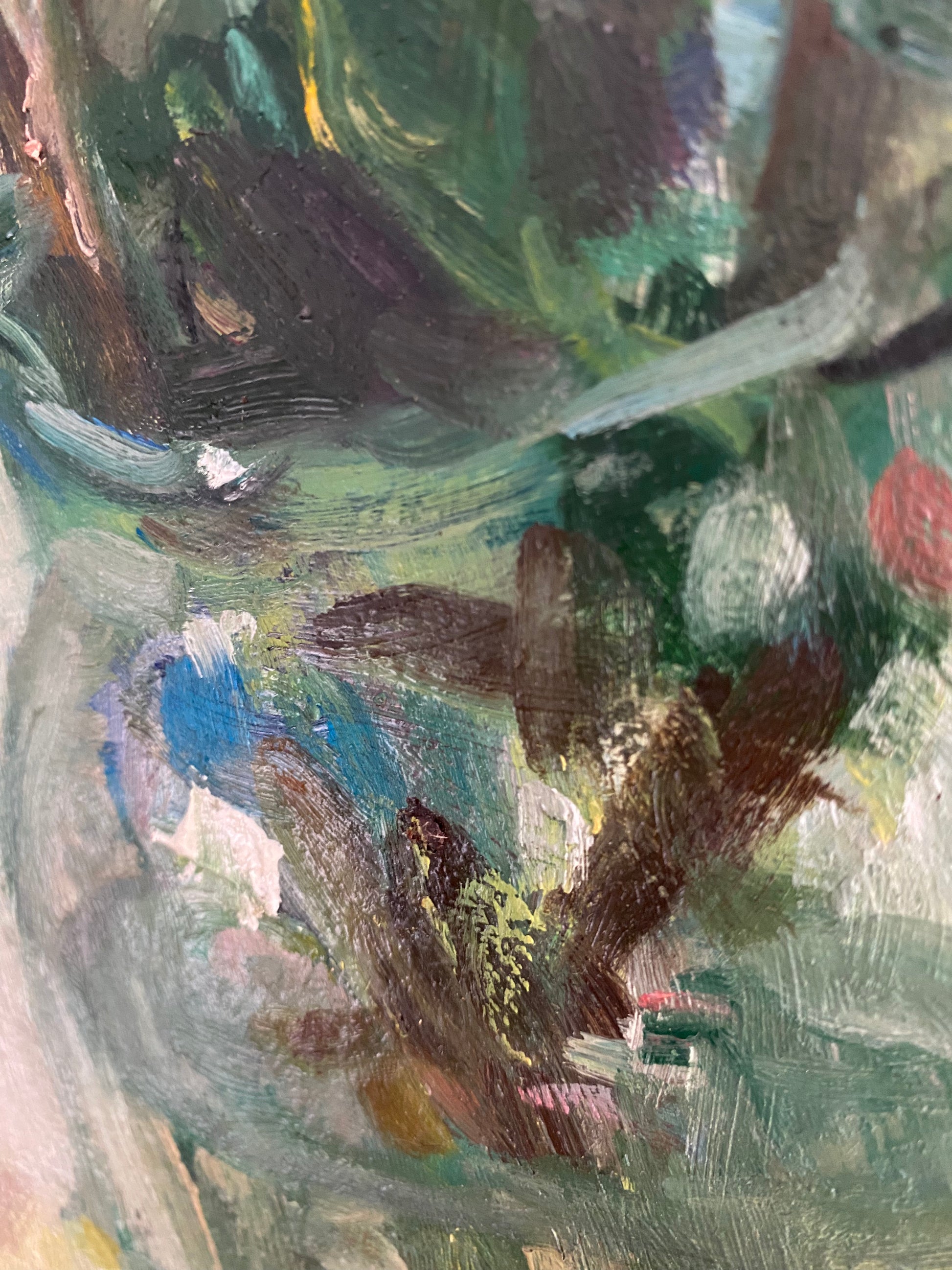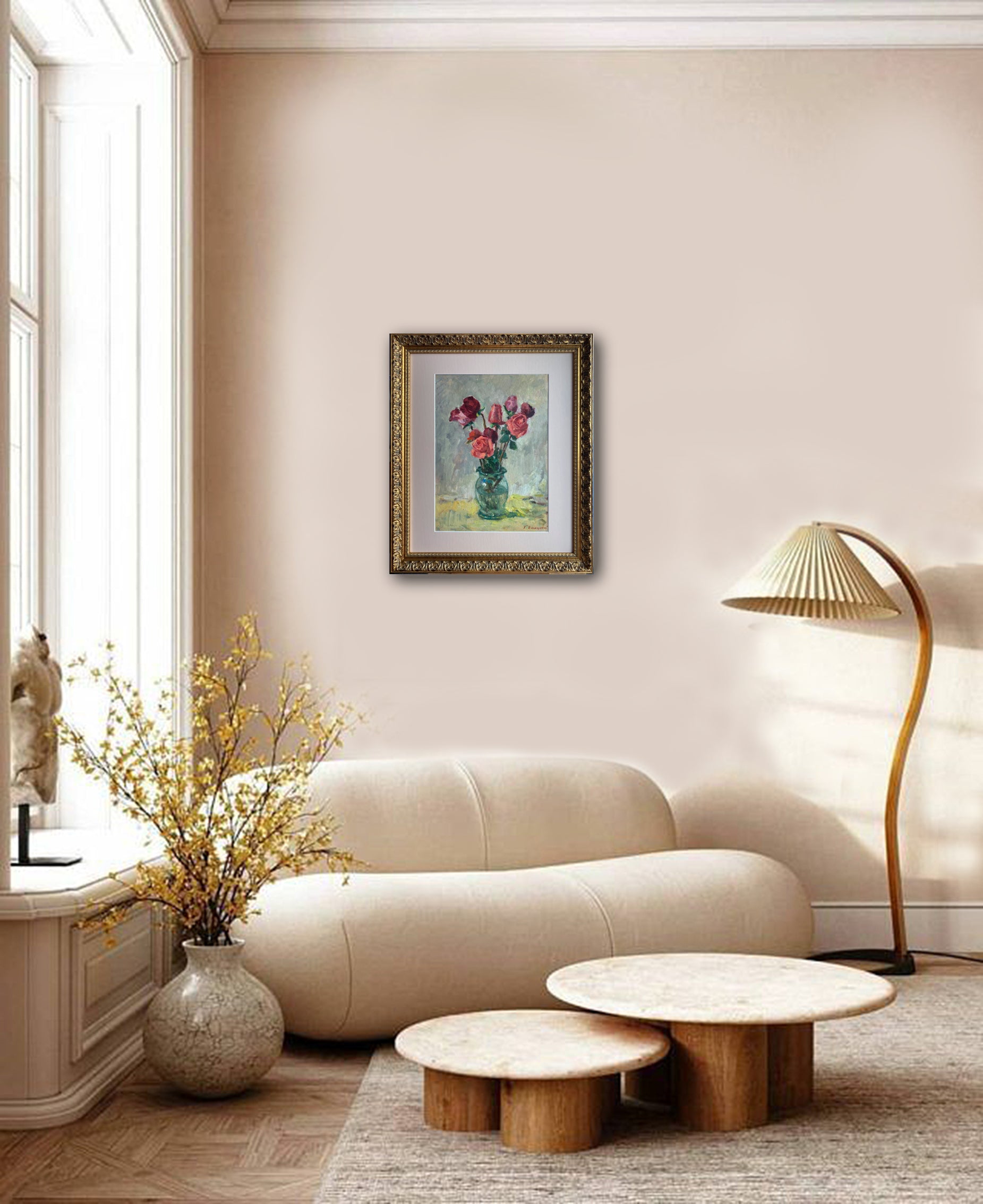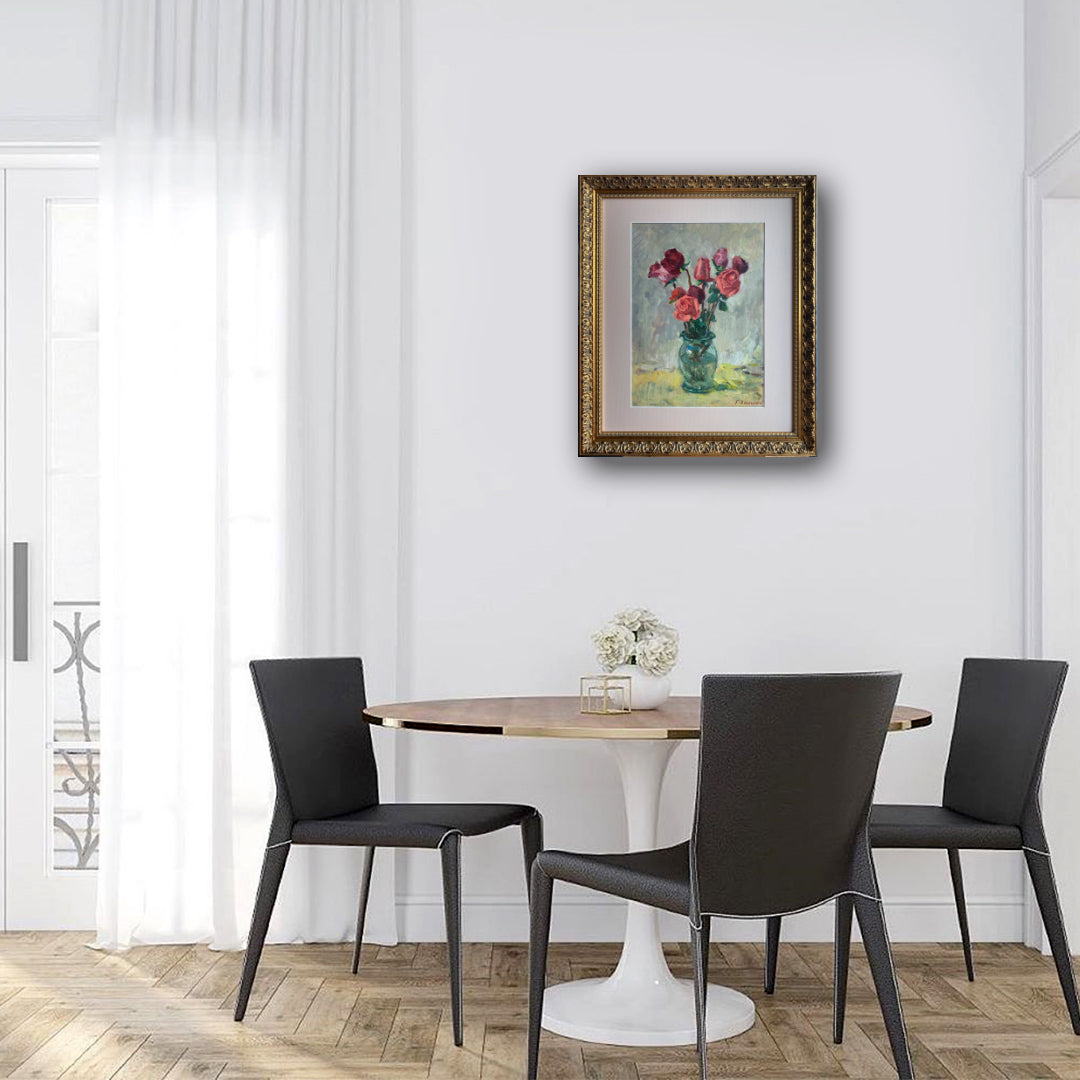 Gemälde – Original-Stillleben mit Rosen in einer Vase, Vintage-Blumenkunstwerk.